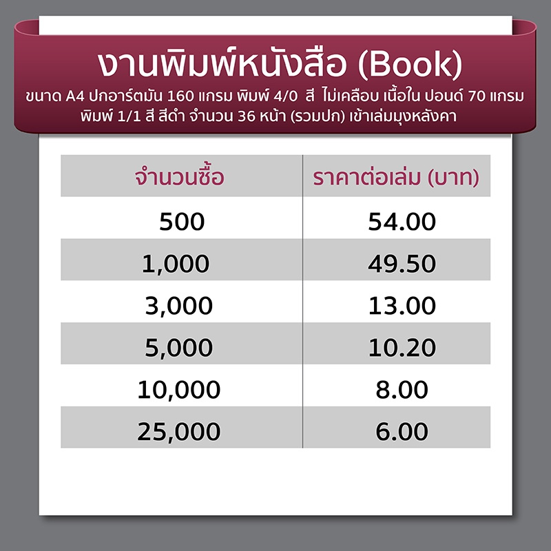 | 25,000 | เล่ม | ราคา | 6.00 | บาท | ต่อ | 1 | เล่ม |